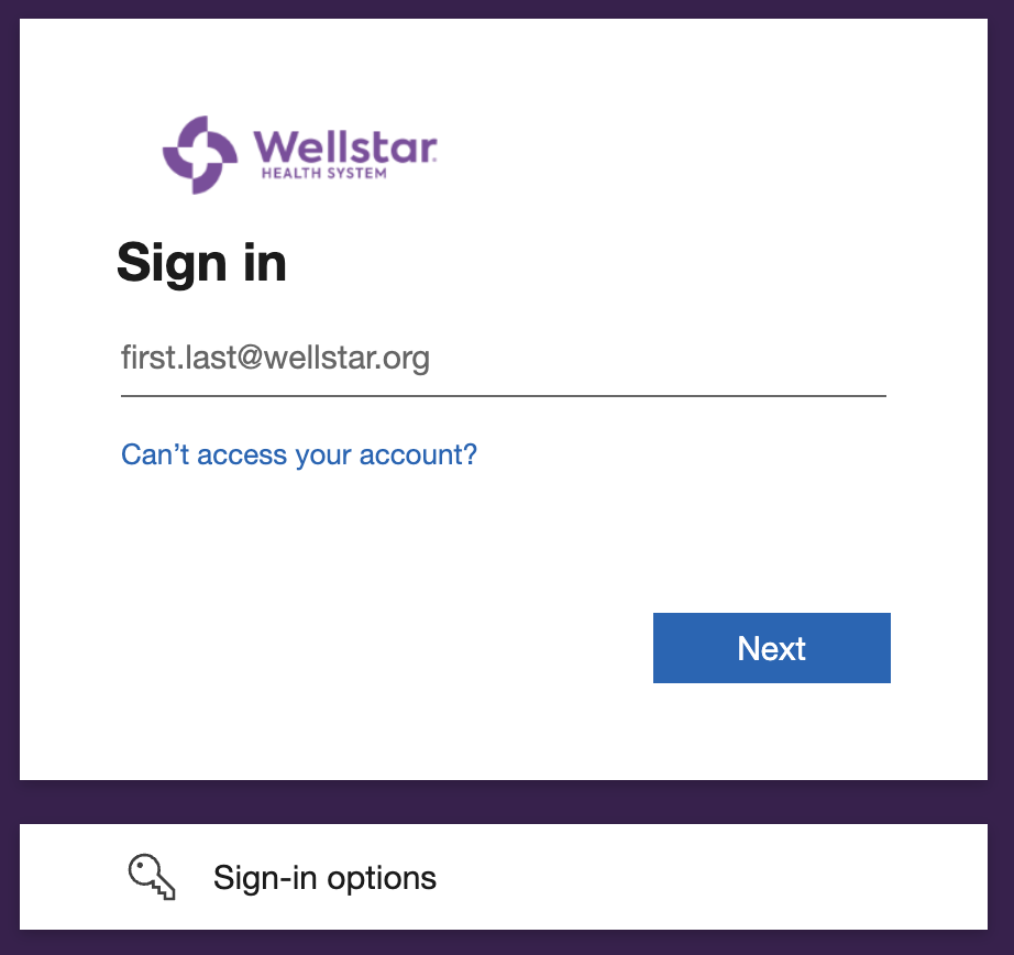 Some WellStar facilities use alternative authentication. If directed by your IT department, click “Alternate Login.”